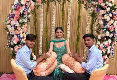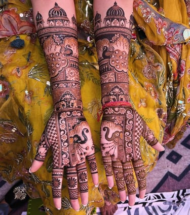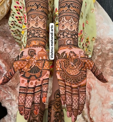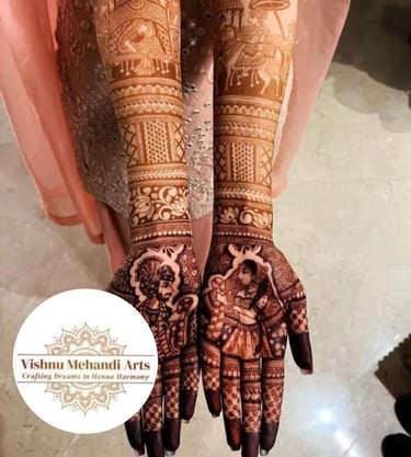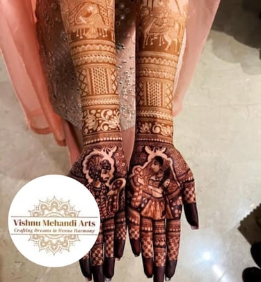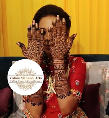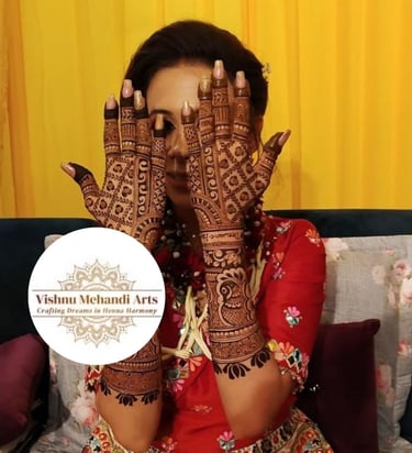 At Vishnu Mehandi Arts, we weave the ancient art of Mehndi into a contemporary tapestry of elegance. Nestled in the heart of Gurugram, our studio celebrates cultural traditions and personalized artistry. With a passion for intricate designs, We transform hands into canvases, creating henna masterpieces that tell unique stories. Guided by tradition and fueled by creativity, our team takes pride in providing an immersive experience that blends the richness of heritage with modern allure. Step into our world, where each stroke reflects our commitment to timeless beauty and craftsmanship.
