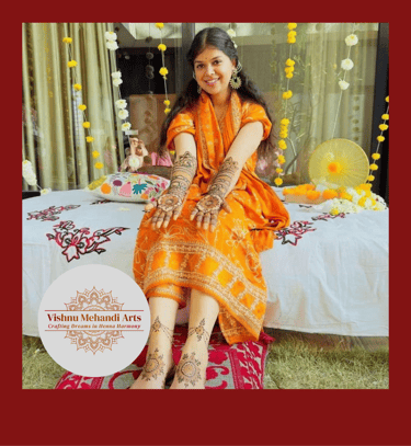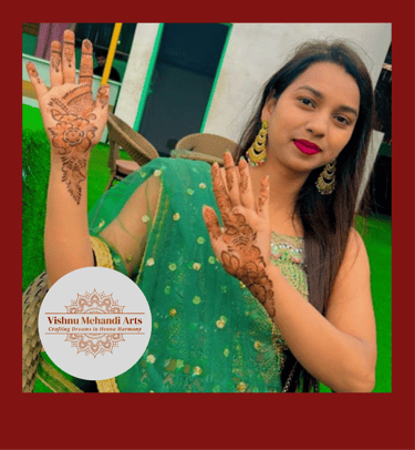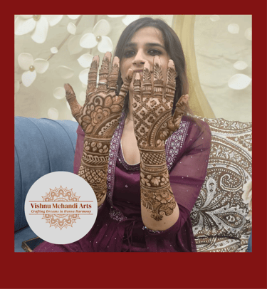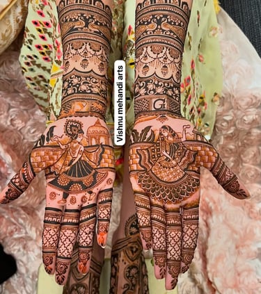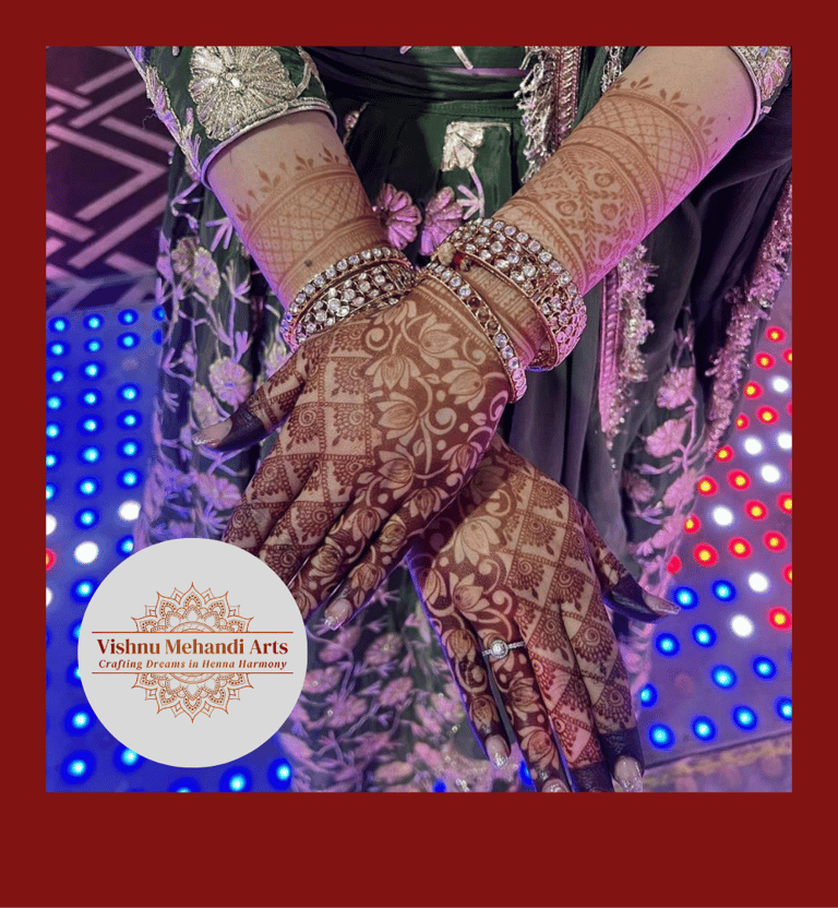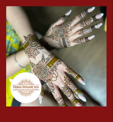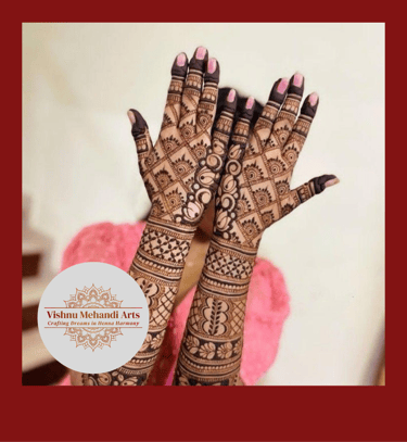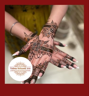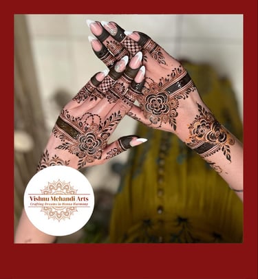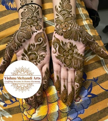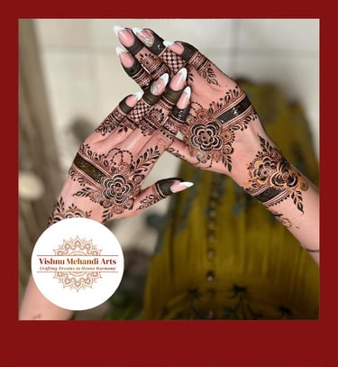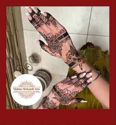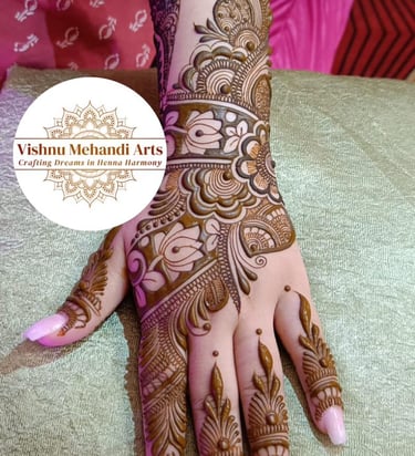 Connect with us to craft personalized Mehndi masterpieces. Explore the fusion of tradition and contemporary elegance at Vishnu Mehendi Arts. - Your canvas, our creativity!